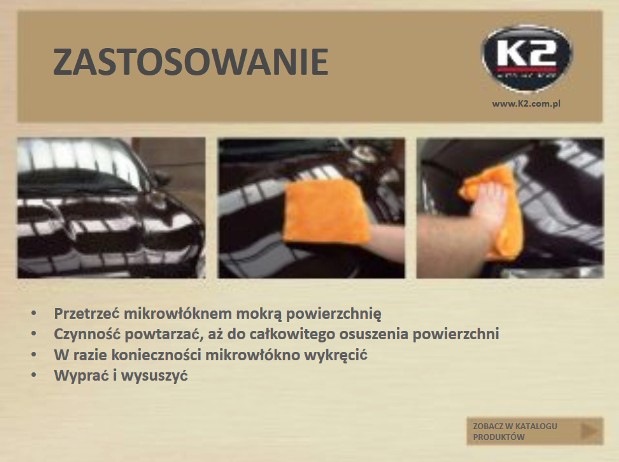 Pozwala na bardzo szybkie osuszenie nawet kilku samochodów bez konieczności wykręcania. Jest bardzo grube, dzięki czemu doskonale wchłania wodę. Nie powoduje zarysowań, nie pozostawia żadnych smug. Mikrowłókno jest przeznaczone dla myjni samochodowych. Można je wielokrotnie prać i suszyć.