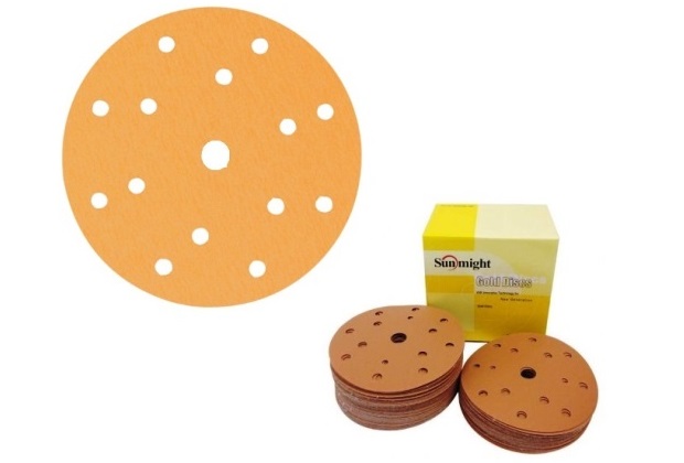 Papier ścierny krążek SUNMIGHT GOLD FILM f150 P60 1 szt mocny posypka tlenek aluminium paier lateksowy 15 otworów