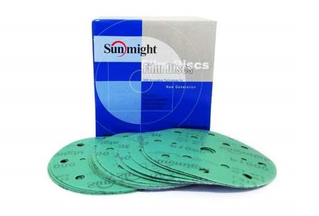 Papier ścierny krążek SUNMIGHT GOLD FILM fi150 P800 1 szt mocny posypka tlenek aluminium paier lateksowy 15 otworów