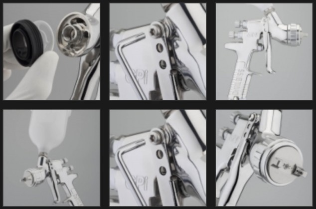 korpus pistoletu wykonany z aluminium kutego na zimno i polerowany, dysza i iglica wykonana ze stali szlachetnej nierdzewnej – łatwy w utrzymaniu i czystości