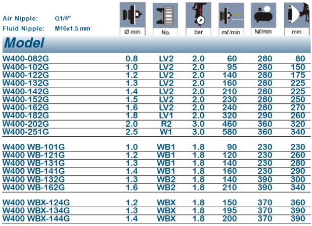 Pistolet lakierniczy IWATA W400 1.6 mm LV2 Classic Plus
