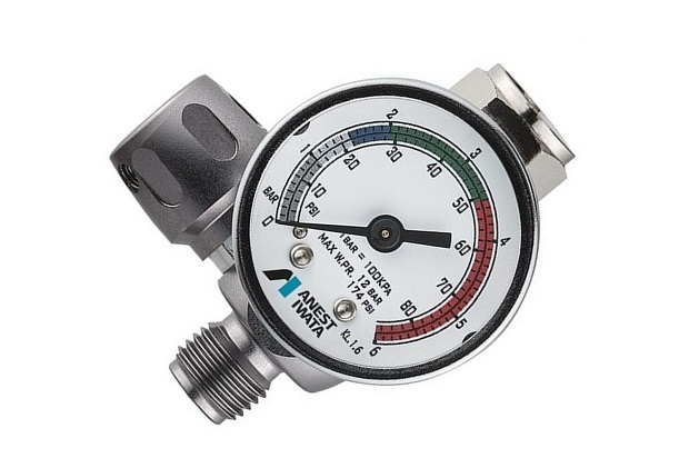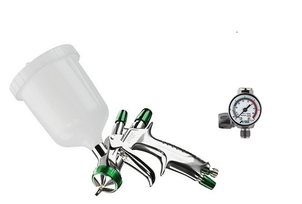 Pistolet Iwata LS400 SR2 Seria druga dedykowana do lakierów bazowych ETS 1,3 mm z manometrem HVC-1 ProSet.