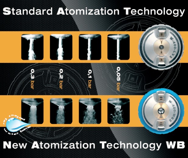 Pistolet lakierniczy IWATA W200 INTEGRA SP WB1 WBS SPLIT NOZZLE najnowsza odsłona kultowego W200. Przeznaczony do pracy z pompami membranowymi oraz zbiornikami ciśnieniowymi. Stworzony do aplikacji materiałów wodorozcieńczalnych jak również konwencjonalnych rozpuszczalnikowych. Technologia atomizacji opracowana i opatentowana przed producenta Anest-Iwata. Innowacyjna technologia zawarta w pistoletach IWATA oznaczonych symbolem WB – skrót od angielskiego ,,water based’’ oznacza iż doskonale radzą sobie one z farbami i lakierami wodorozcieńczalnymi. Ewenementem innowacyjnej konstrukcji wyróżniającej tą gamę pistoletów jest specjalnie nacinana dysza w trzech lub w czterech miejscach wyglądające trochę jak koniczynka. Taka konstrukcja zapewnia preatomizację i atomizację na poziomie kilku dziesiątych bara. Technologia WB z głowicami WB2, WBX, LV4 (LPH400) zapewnia wysoki komfort aplikacji i eliminuje trudności powstające podczas aplikacji farbami metalicznymi i perłowymi na dużych powierzchniach. Naniesiona powłoka pozbawiona jest bardzo trudnych do uniknięcia smug, cieni i chmurek. Niewątpliwą zaletą jest również niewielka waga pistoletów, doskonała ergonomia, prosta obsługa oraz duża odporność i trwałość części eksploatacyjnych.