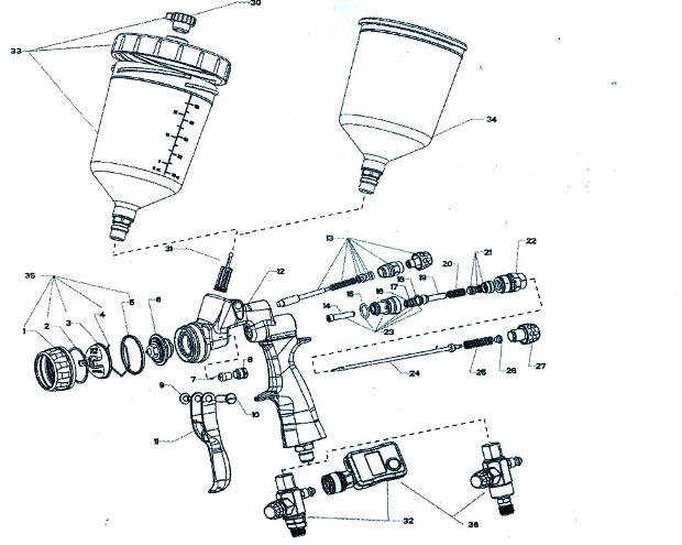 Zapotrzebowanie powietrza: HTE 290 l/min HVLP 340