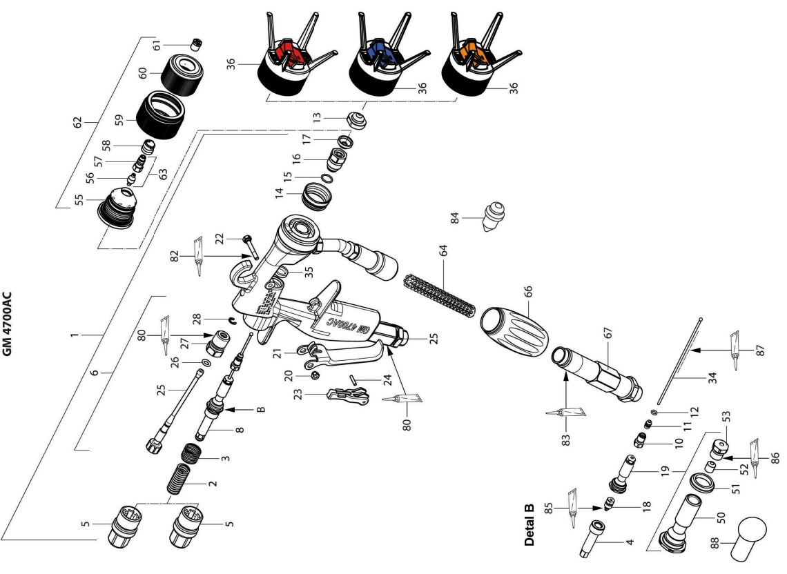 Pistolet lakierniczy malarski GM 4700 AirCoat - pistolet lakierniczy z filtrem długim HP bez dyszy głowicy
