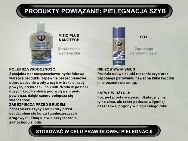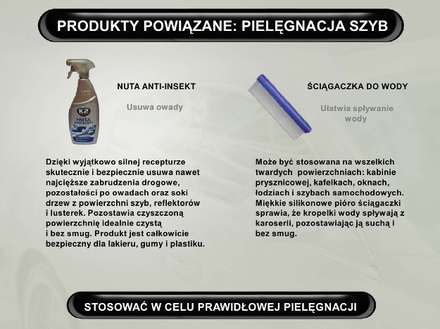 szyby, sprawiają, że woda nie przywiera do szyby i spływa z niej w postaci