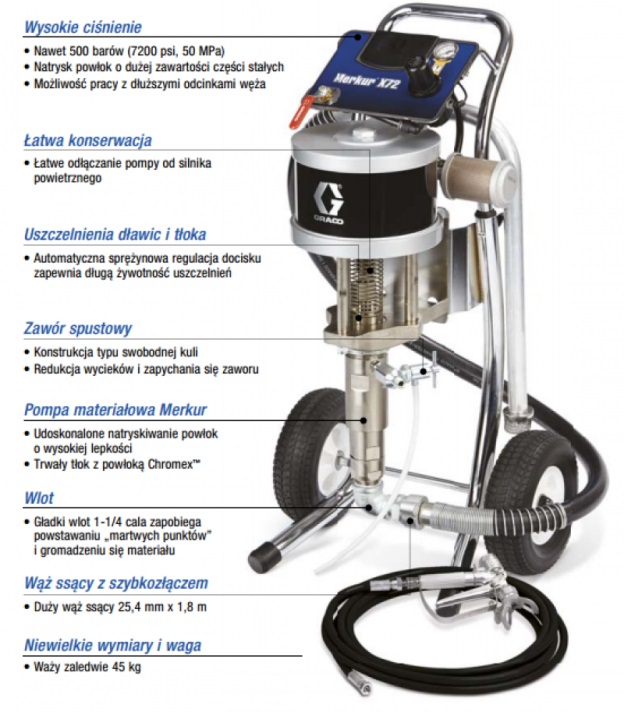 Pompa lakiernicza malarska Graco Merkur X72:1 z pistoletem XTR wózek wąż