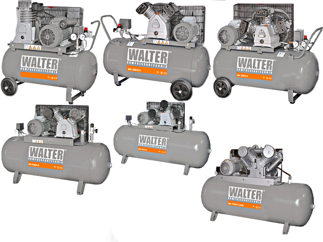 łokowe kompresory WALTER Kompressortechnik serii GK zaprojektowano z myślą o jak najefektywniejszym wytwarzaniu sprężonego powietrza, dlatego charakteryzuje je wysoka wydajność efektywna przy niskim poborze energii. Dzięki niskim obrotom pompy, kompresory te można eksploatować przez wiele lat bez pogorszenia ich parametrów technicznych.