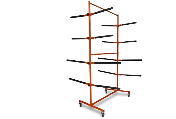 Stojak wózek SOLL na zderzak mieści 8 zderzaków, wymiary 1,20m x 70,5cm x 2,13m.