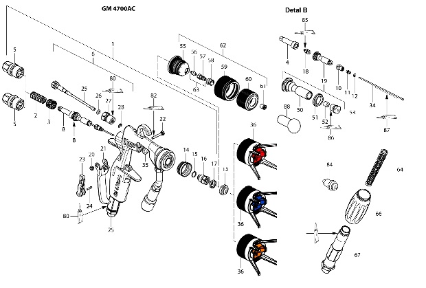 Pistolet lakierniczy malarski GM 4700 AirCoat - pistolet lakierniczy z wężami 7.5m, dyszą AC oraz zapasowymi