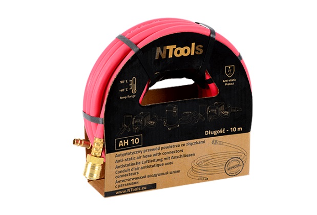 Wąż powietrza antystatyczny 10m okuty fi 8mm NTools RED elastyczny przewodzący ładunki elektrostatyczne mniej wtrąceń podczas lakierowania