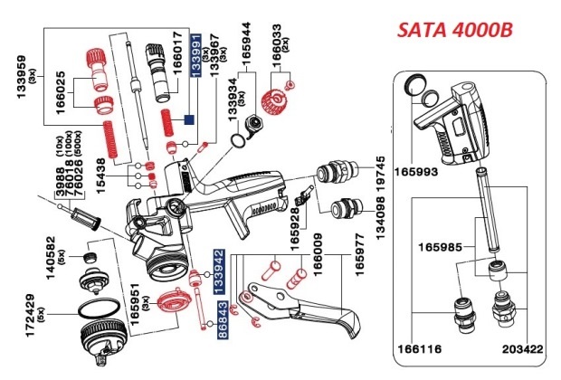 Zawór pistoletu lakierniczego SATA 4000 B 166017 tył iglicy